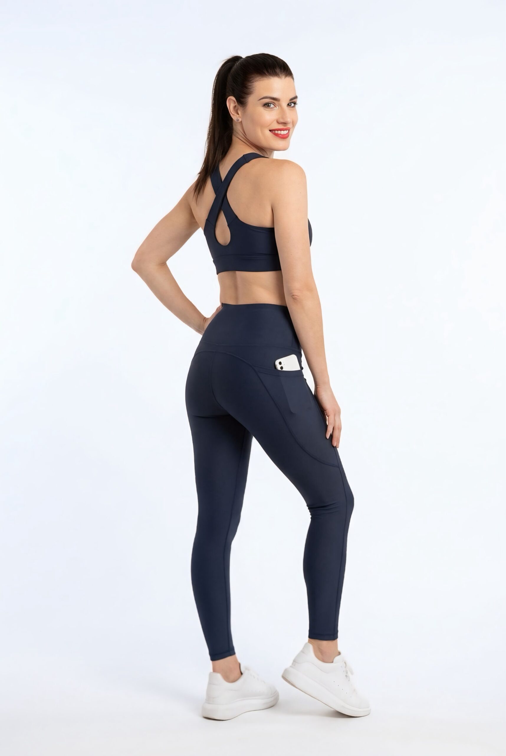 Dámské legíny – vysoký pás – navy modré s kapsou