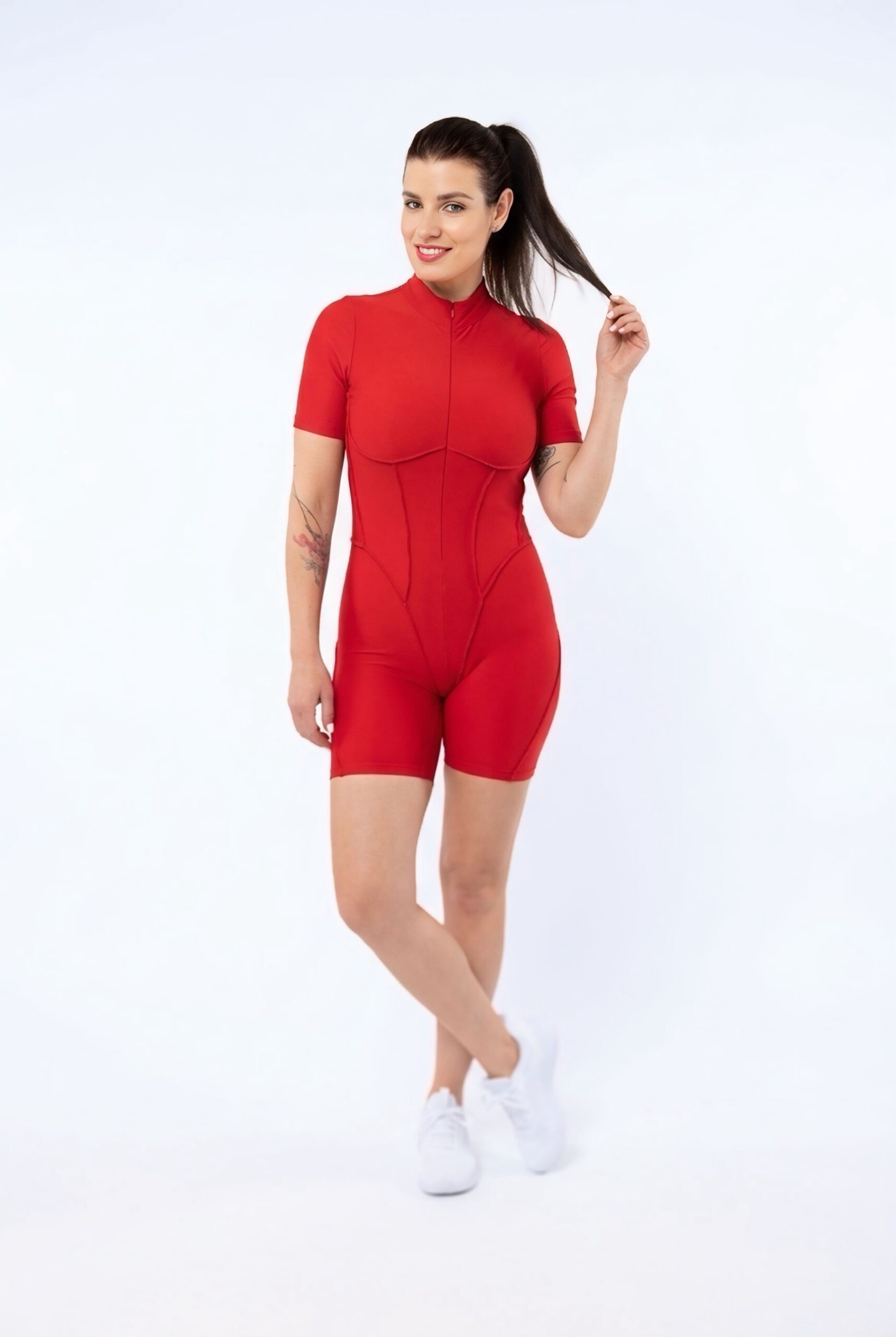 Dámské overal červený, prošívaný, krátký, který Vás přesvědčí svou kvalitou a barevnou kombinací. Buďte vždy jedinečná ve všech sportovních aktivitách – fitness, běh, jóga apod. Sportovní overal doporučujeme prát v pračce na 30 stupňů a nedávat do sušičky. Díky dodržování těchto doporučení Vám legíny vydrží v původním tvaru a barevnosti několik let, proto se nebojíme Vám dát na tento produkt 24měsíců záruku.
